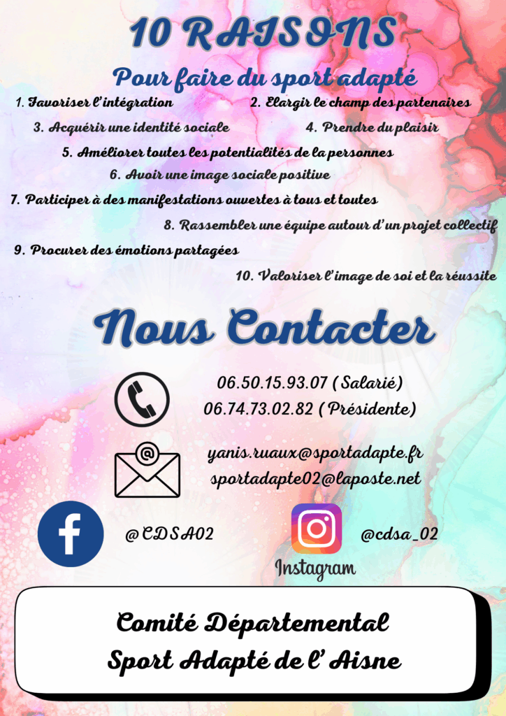 La prestation sportive du CDSA02 peut se dérouler en individuel ou en groupe, au sein d’un établissement ou en dehors. Aucune licence de sport adapté n’est nécessaire pour en profiter. Nos activités sont conçues pour être accessibles à tous, dans un cadre sécurisé et convivial, afin de favoriser le bien-être, la forme physique et l’esprit d’équipe. N’hésitez pas à nous contacter pour obtenir toutes les informations et un devis personnalisé !
